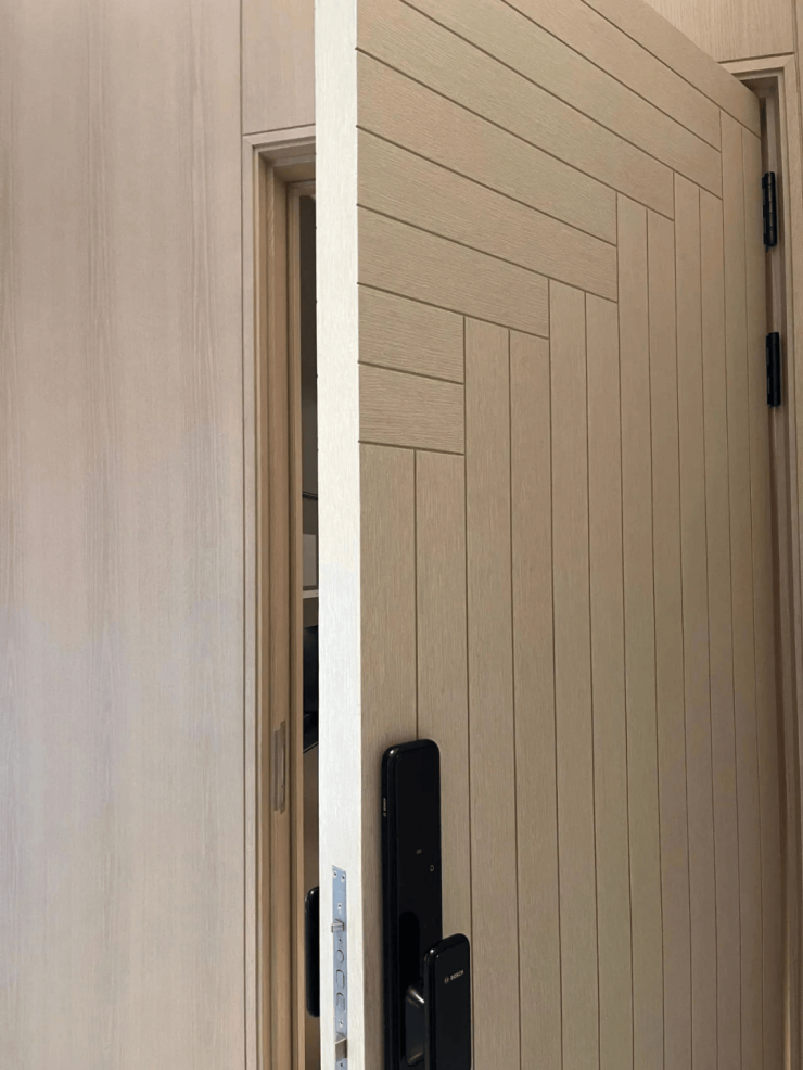 装甲门入户,升级的门板厚度,搭配德国博世(或同等档次品牌)智能锁,带来沉稳安全的厚重质感,每次开启都身份感满满。