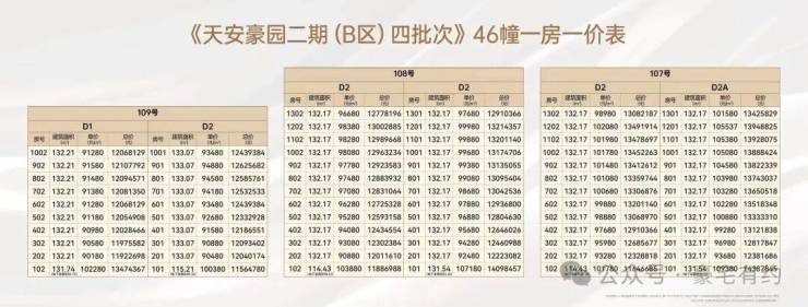 在售四五六批次一房一价表