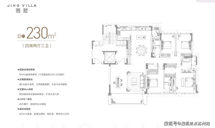 项目有洋房和联排两种产品。洋房面积在230-350平米之间,一梯两户的设计保证了私密性。南向面宽达到惊人的17.3米,7.35米的大客厅和6米宽的主卧套房,再加上中西双厨和全明卫设计,住起来宽敞又舒服。更难得是**得房率高达85%**,这在现在的新房里可不多见。