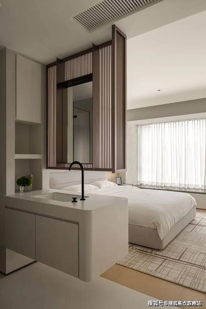 白色逐渐浓郁,极简主义的美也越发的精彩了,淡雅且宁静,为休憩铺垫了一层舒适的基调,让空间直抵人心。