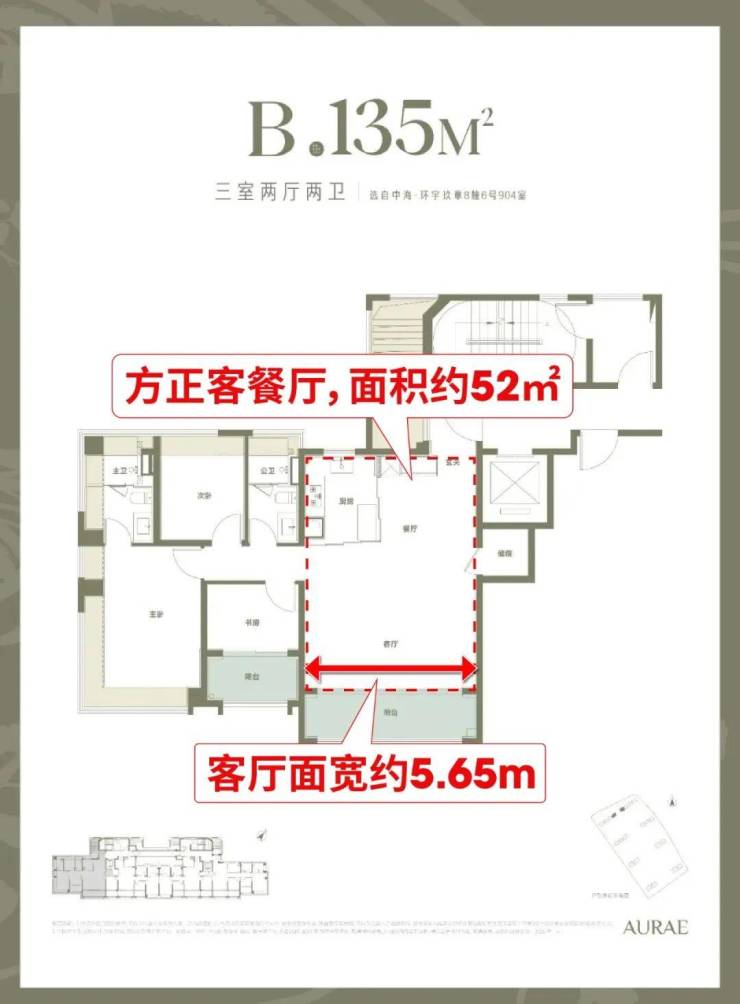 3、约135㎡3房,板块罕有双唯一性大三房