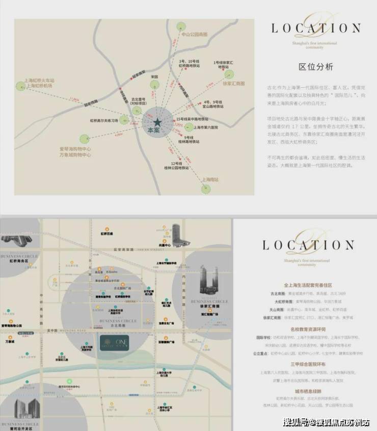 项目地处闵行长宁交界的古北板块,项目依托虹桥交通枢纽和长宁徐汇商圈,交通便利配套成熟,是上海第一个大型高标准的国际豪宅社区。
