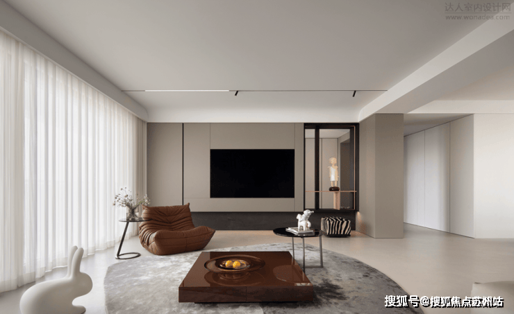 电视背景墙旁边打造一座透明背景墙,打破壁垒的限制,将后部空间与客厅形成互联。