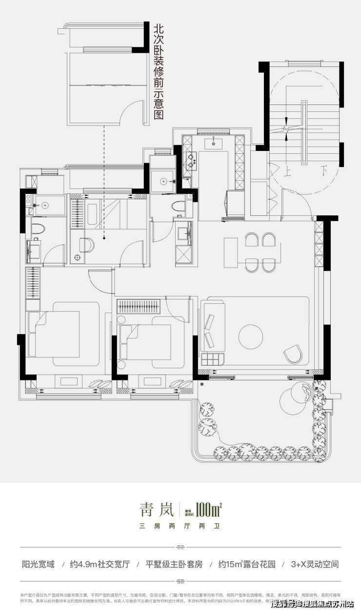 青岚户型 建筑面积约100㎡ 三房两厅两卫