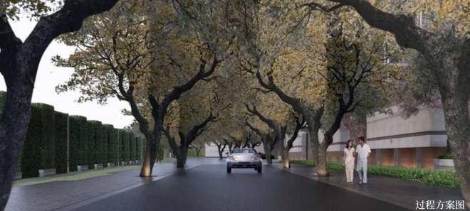 比如,规划道路上的香樟树,要选择合适的树龄与尺寸,项目花了数月才找到10棵合格的。围墙间隔的紫薇树,也是千挑万选而来~