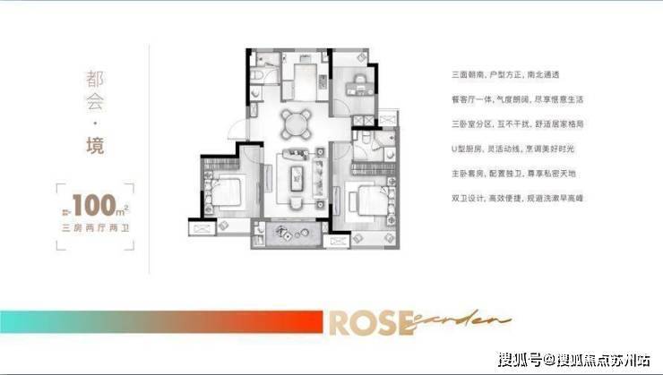 面积布局特点92㎡三室两厅一卫一梯两户,得房率85%