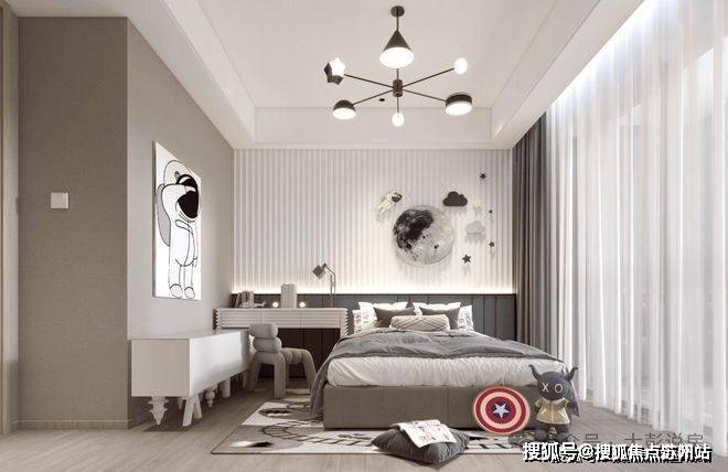 私密场域依旧保持静谧,黑白色基础上搭配了更多的色彩,例如深棕、浅紫等,艺术品的衬托深邃迷人,热络了家的氛围。