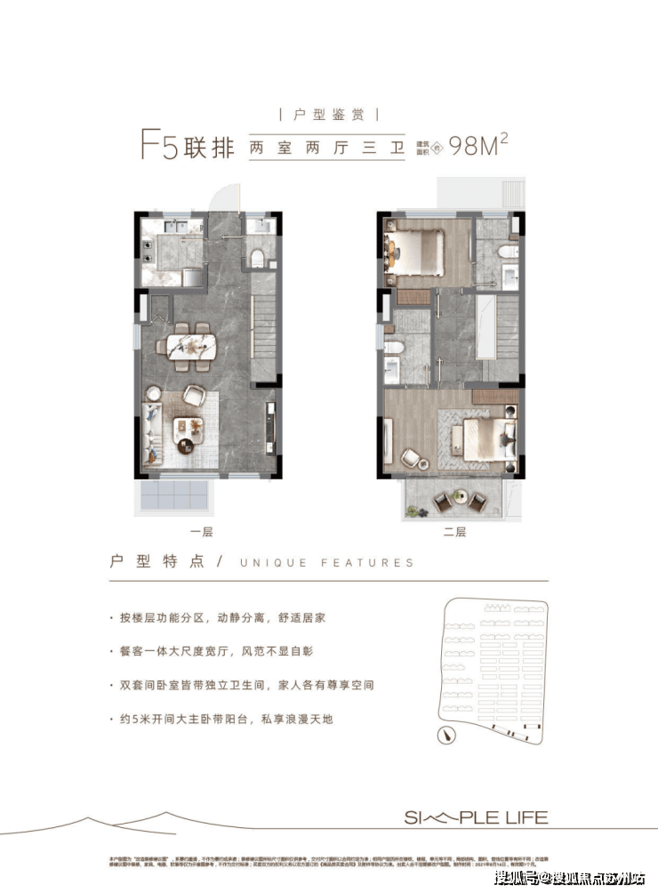 层高:洋房2.9米,联排客厅挑空约6米