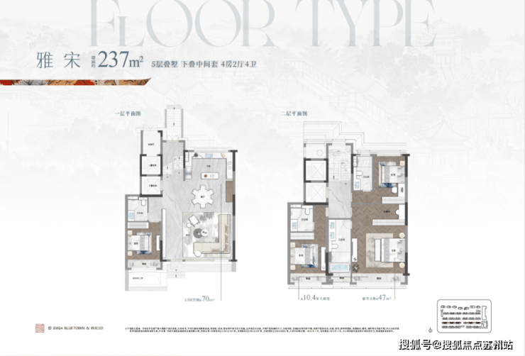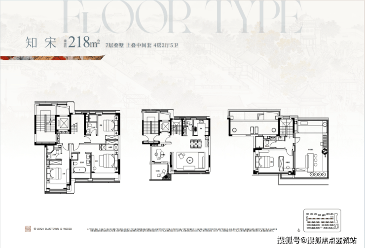 项目主力建面约168-280㎡的精装叠墅以及全精装修大平层,一层一厅、一叠双院、一叠双露台、全系套房、大品牌精装交付。