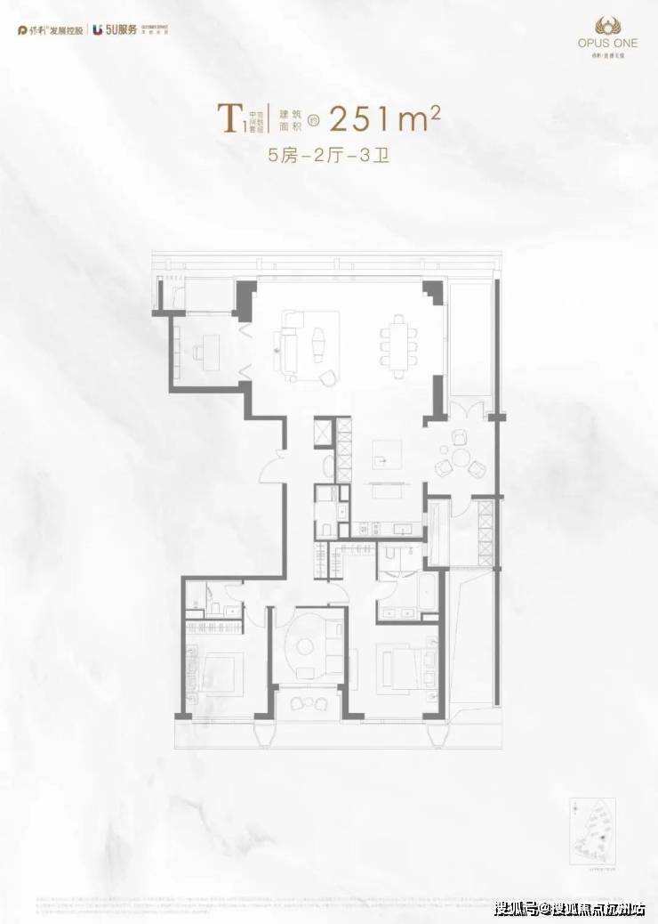 主力户型:190-252㎡(3-5房),层高3.35米,得房率79%。