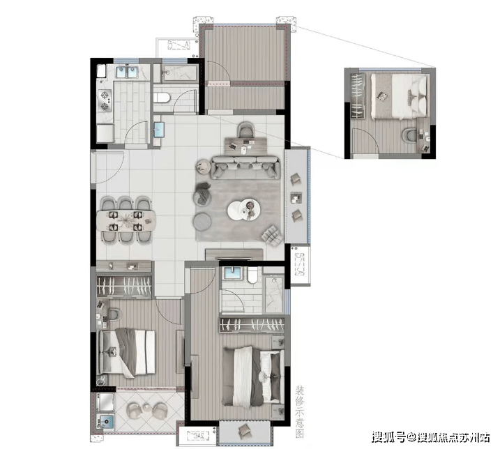 户型信息:主要户型有90㎡左右的二室一厅一卫,97-104㎡的三室两厅户型,117-126㎡的四室两厅户型。