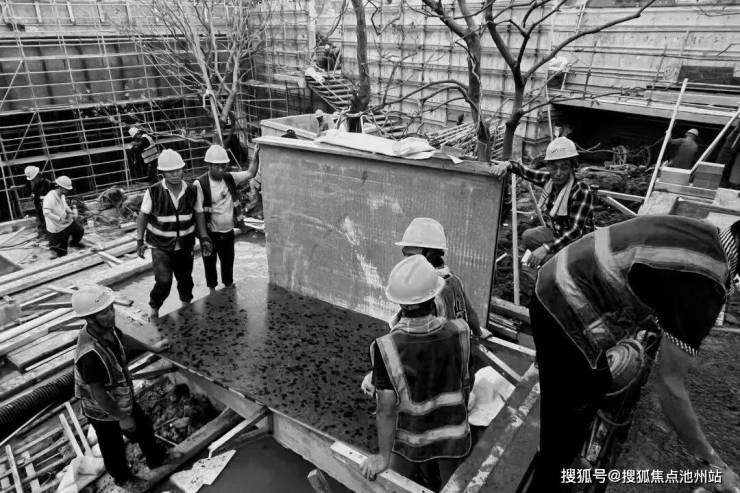悬崖会客厅廊架地面采用安哥拉黑 3.6m×1.8 m×0.3m 大板铺贴,施工难度极大,需 8 人协作抬运并配合机械作业,最终呈现出大板面的优质效果。会客厅廊架采用昂贵蜂窝不锈钢大板,大气且保证平整度,以高品质材质与精湛工艺,进一步提升空间的质感与格调。