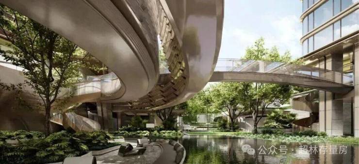 项目6米架空层+6米下挖,实现了12米的高差,打造立体景观庭院,让整个公区的视觉感提升了一倍以上,在有限的地块中,实现了惊人的景观体量。