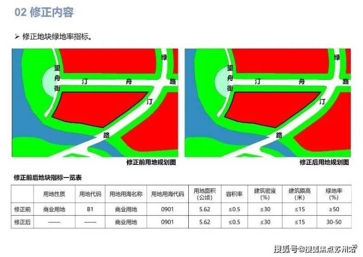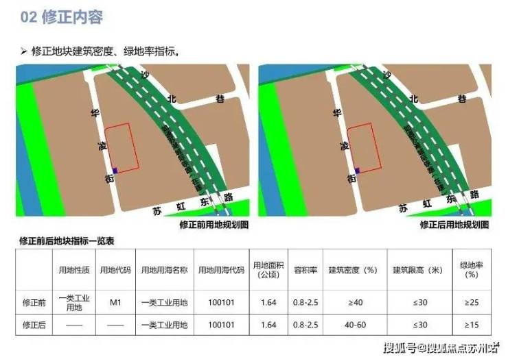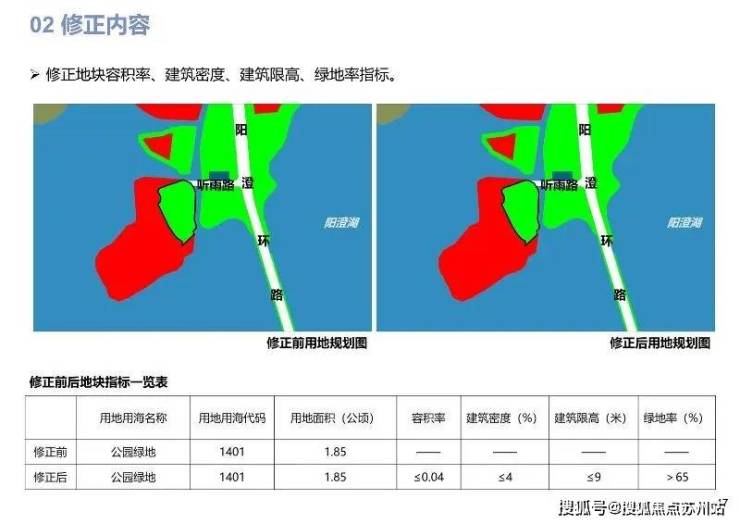 修正内容:修正地块容积率、建筑密度、建筑限高、绿地率指标。
