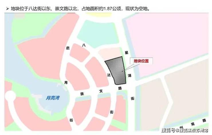 该地块位于八达街以东、崇文路以北,占地面积约1.87公顷,现状为空地。
