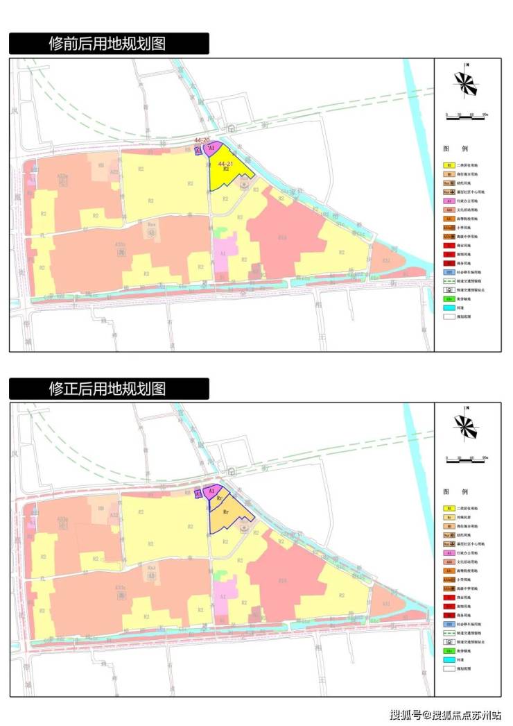 本次对44-21地块的用地性质进行勘误,将原规划二类居住用地(R2)修正为传统民居(Rr)。结合现状实际权属,修正44-20、44-21的地块边界,用地面积相应修正,并对地块控制指标进行完善。