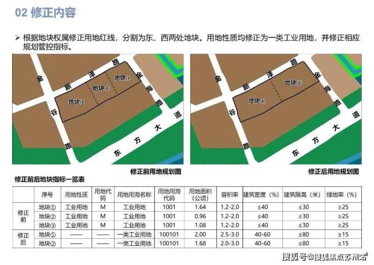 修正内容:将地块分割为两块工业用地,并修正地块规划管控指标。