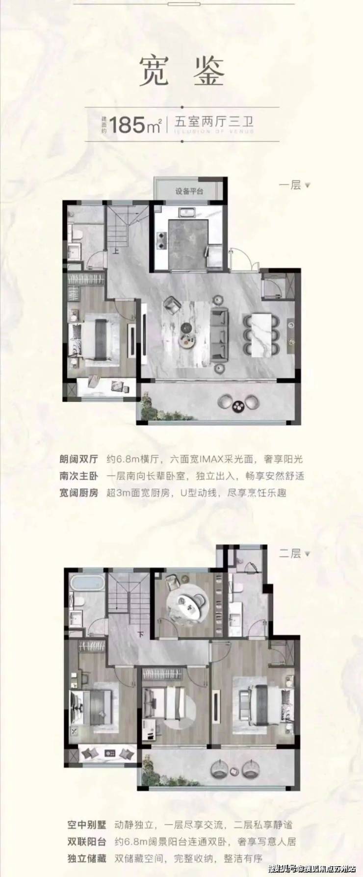 叠加别墅:166㎡(四居室)、185㎡(五居室)