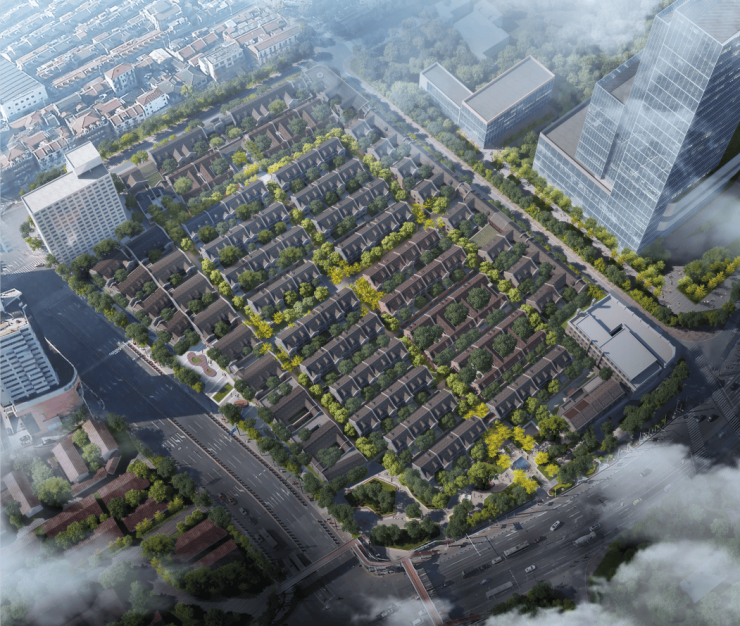 【弘安里】地块总占地面积约3.7万㎡,容积率仅1.1,地上住宅面积约4.1万㎡,建筑限高仅10米.近日项目规划设计方案公示:项目将建2-3层的别墅及部分配套用房.
