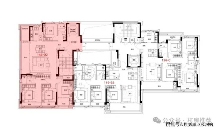如果说前面的户型更多的体现了实用性,那么143方的户型还实现了尊贵感。
