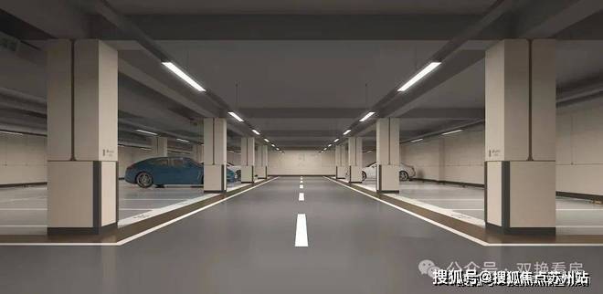 星级地库:墙面大面积米色石材,地面铺设金刚砂地坪,质感非凡