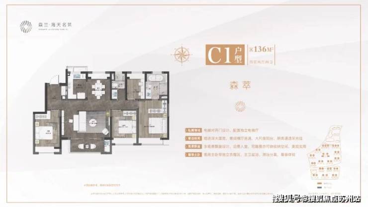 1、建面约136㎡,拥有超阔横厅的梦中情屋。短进深大面宽,奢阔横厅连通,大尺度阳台,明亮通透采光佳。