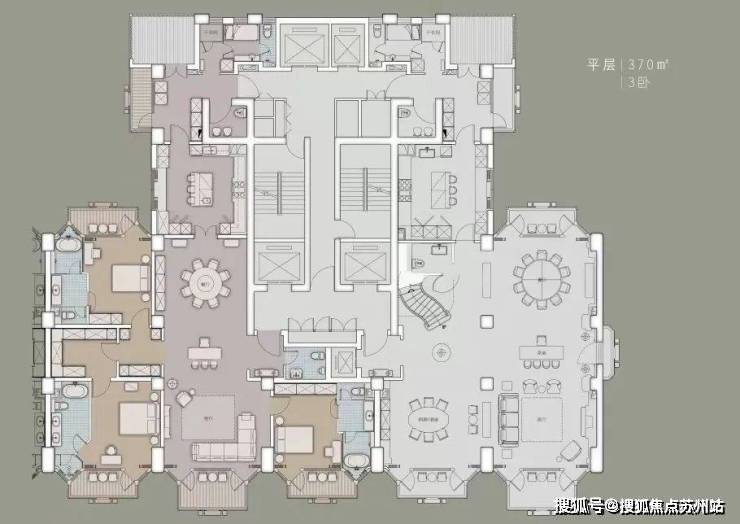 住宅部分全部大平层(复式)设计,单套面积约370-1500㎡,全部精装交付。