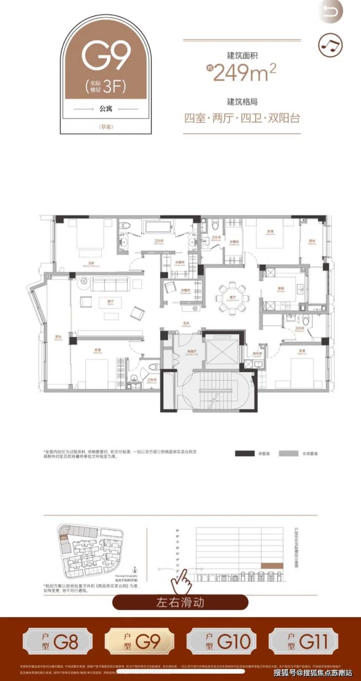 项目的平层户型无论是功能性还是尺度感都足以承载一个大家族的居住需求。十字中轴的布局,方正无比的格局,大开间朝南的设计都极大的保障了每一位家庭成员的私密性和舒适度!