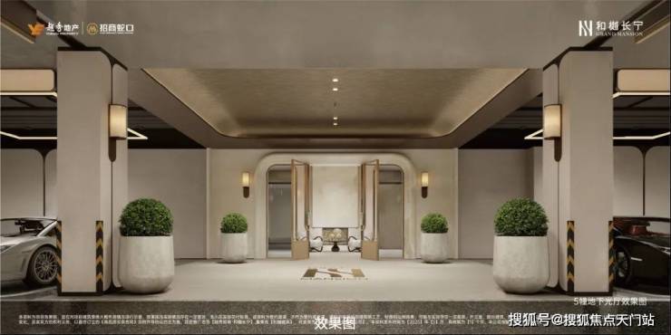 地下大堂,则以温润的白玉石材营造沉浸式归家体验.精奢车库的车行道地面采用水磨石、主体车道全吊顶设计,每个车位上方还都有LED环绕灯吊顶,让平凡的日常场景成为尊崇身份的暗语.