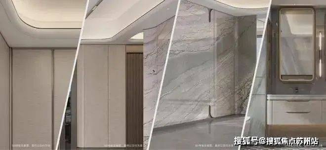 又比如工艺复杂、成本更高的圆弧形吊顶设计,只为了几分柔和圆润之美;玄关的拐角处由皮革软包圆弧阳角处理,以防拿取物品时刮伤和磕碰;