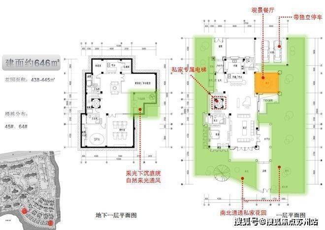 建面约646㎡独栋别墅,花园面积438-445㎡