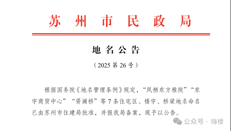 近日,苏州市住房和城乡建设局正式批准了四个住宅项目的标准地名,为苏州房地产市场再添新成员。这些项目分布于吴中区、工业园区、相城区和姑苏区,均于2025年10月29日获得命名批准。