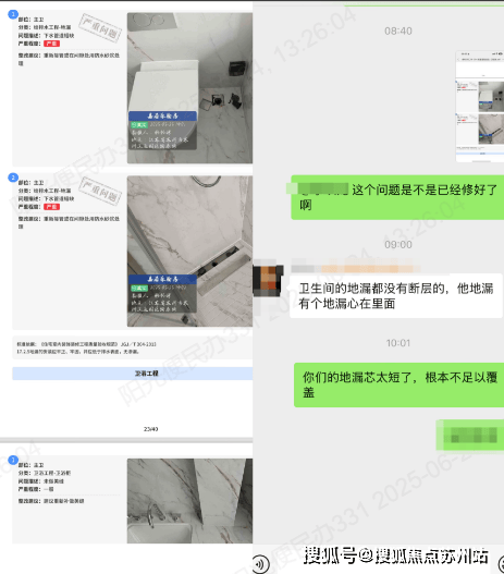 苏州保利天汇:验房报告明确的地漏断层、空调排水线问题,工程师后期矢口否认;
