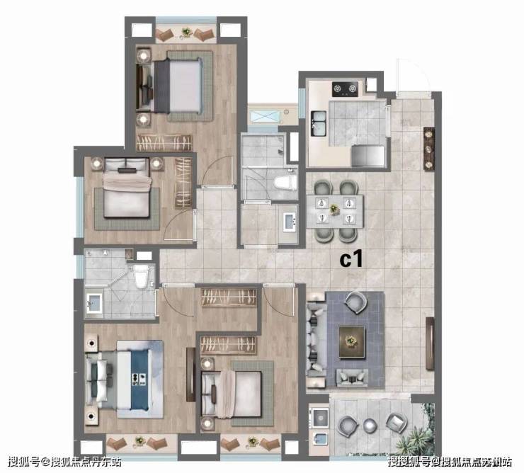」沿十字中轴,规划三进景观动线,以尊崇入户大门、社区会客厅、宅间四季花园、中央阳光草坪、中轴林荫大道、中心花园等六重美学空间,营造温暖且艺术的归家礼序。