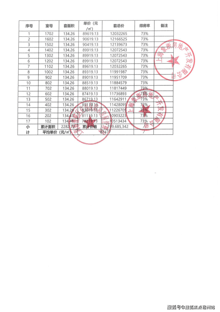 最新一房一价表: