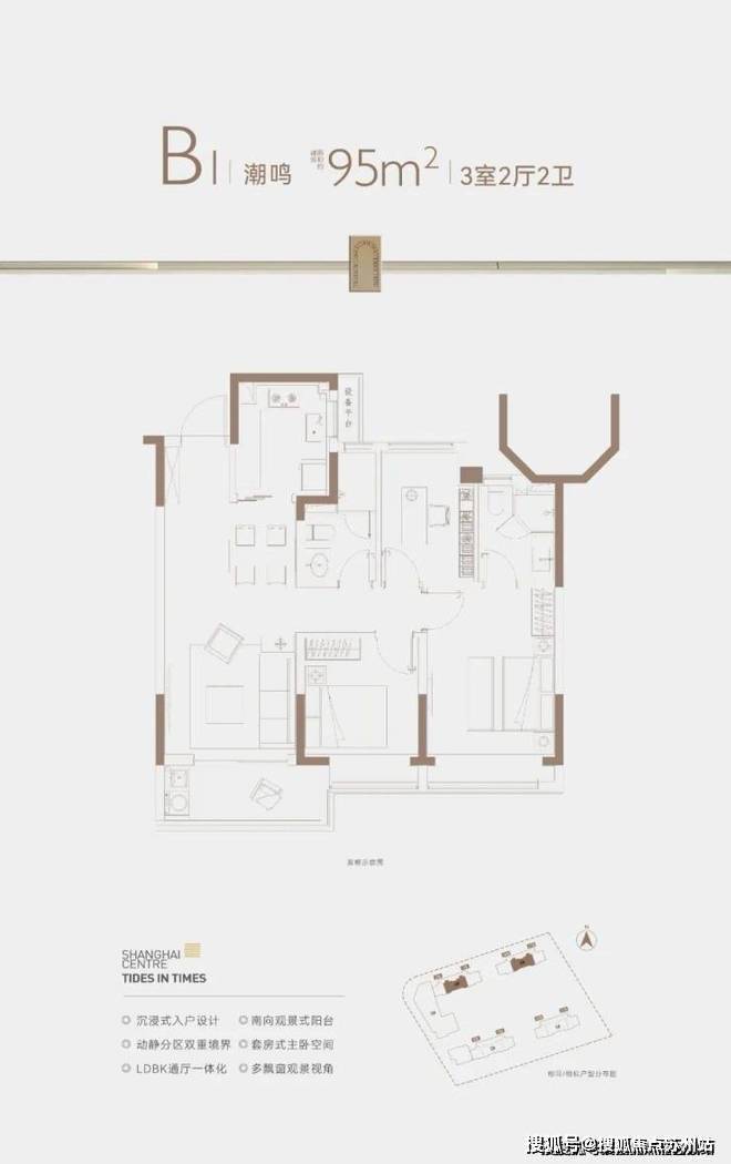 在格局上,户型三开间朝南+动静分离,室内通风、私密性俱佳。