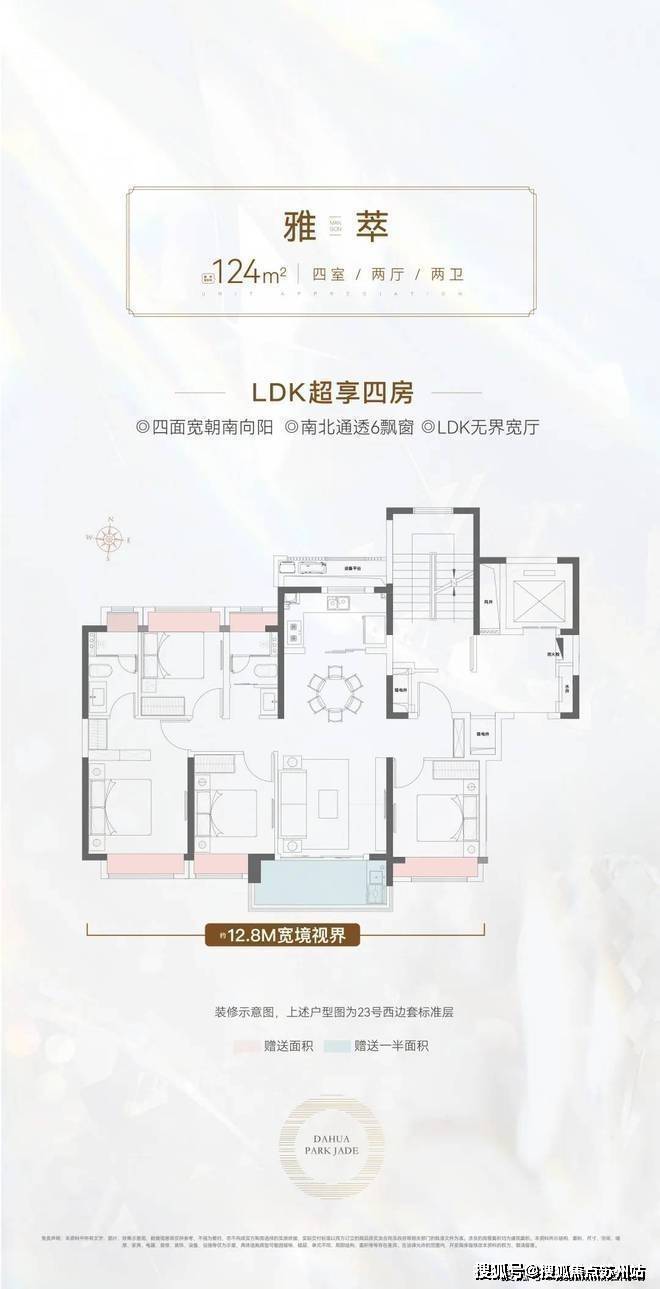 建面约124㎡的4房2卫户型,通常来说是紧凑型的户型。