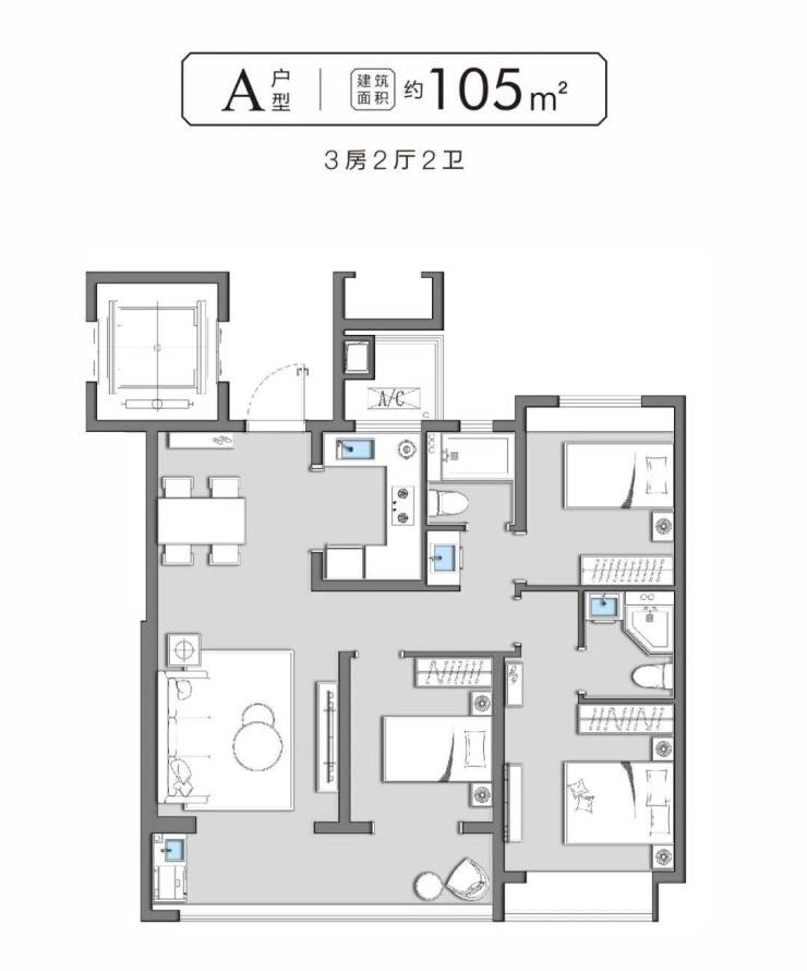 项目主打全明户型,南北通透,采光通风极佳。目前主力户型为105㎡三房、138㎡四房、149㎡及151㎡阔景四房,满足从刚改到品质改善的不同家庭结构需求。高得房率设计,让每一平米都物超所值,是理想的改善型住宅选择。