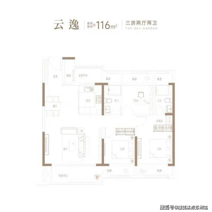 116平三房两厅两卫户型解析: