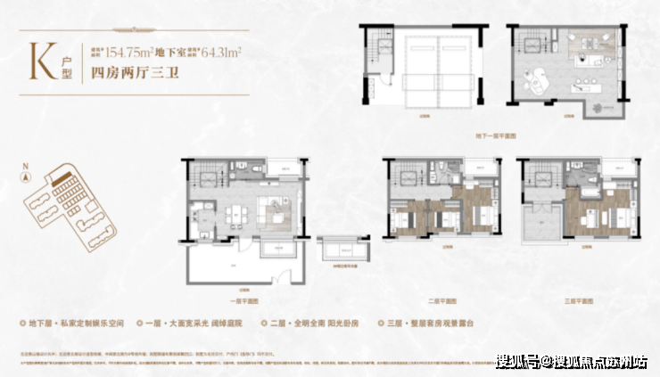 户型设计上,上下四层空间+超多附赠面积,有天有地,将居住的体验感拉满!