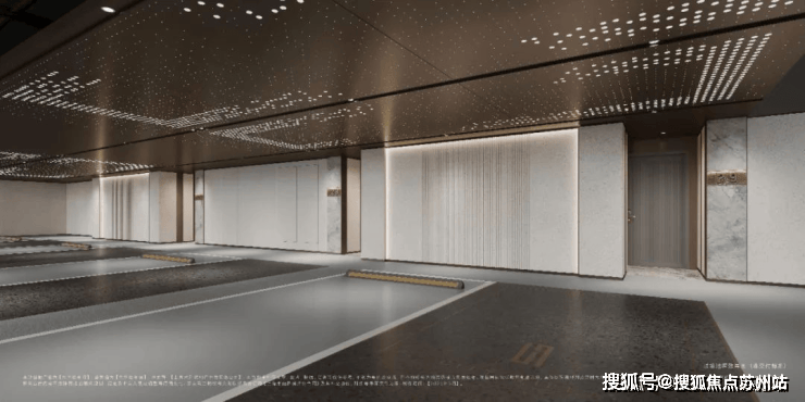 汽车坡道运用了氛围照明,并结合了星空顶的设计,突显出其独特性。玄关区域通过线条灯光、环氧磨石地面、星空顶以及柱面石材的装饰,增强了业主回家时的仪式感和空间的品质感。
