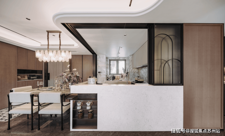 市面上传统的厨房,经常被作为封闭式空间和公区隔开,使用效率一般。项目针对新一代购房人群需求,对厨房空间和动线效率进一步优化,使其成为家庭中的“社交中枢”。