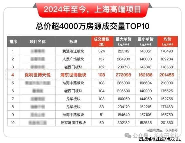 再将时间轴往前移,从2023年至今上海豪宅单价超20万/m²的成交量排行中,保利世博天悦甚至力压新天地、外滩、陆家嘴、苏河湾、徐汇滨江等一众热门板块新盘,问鼎上海豪宅之巅!