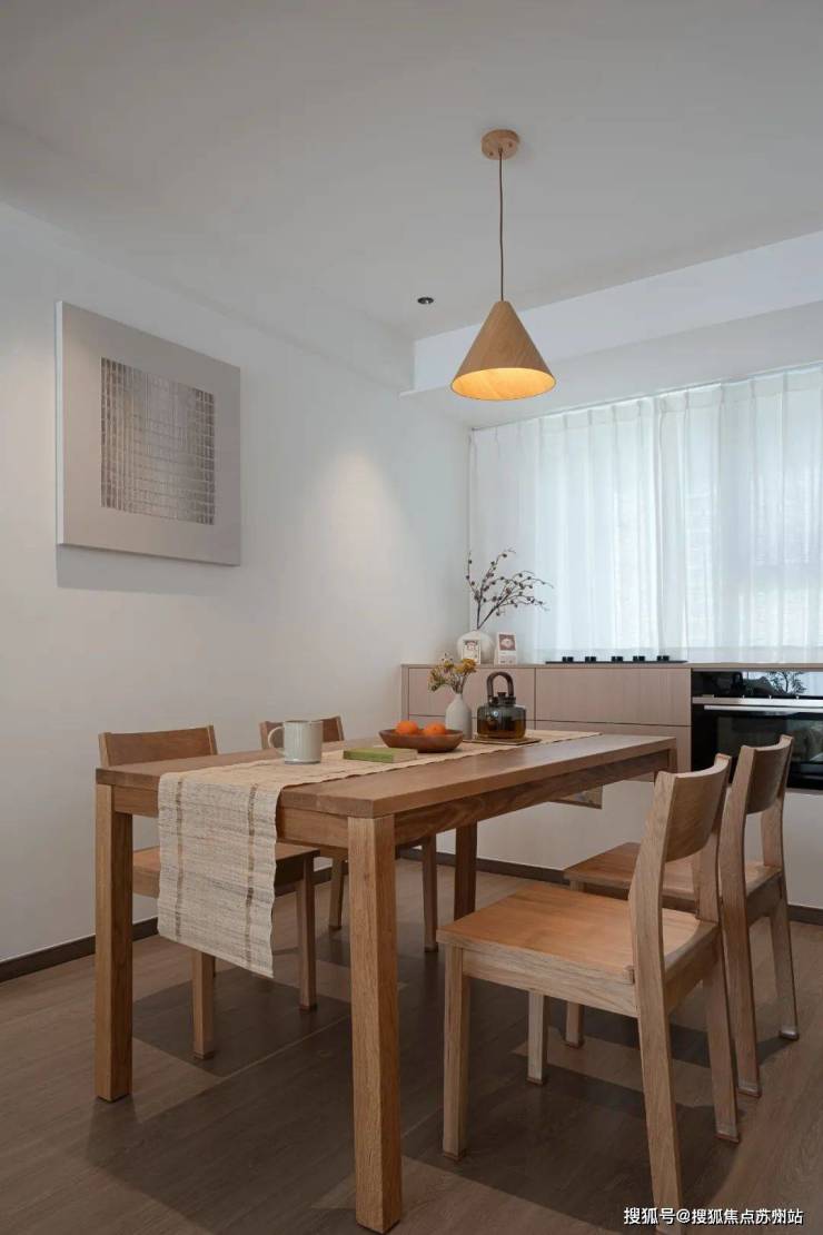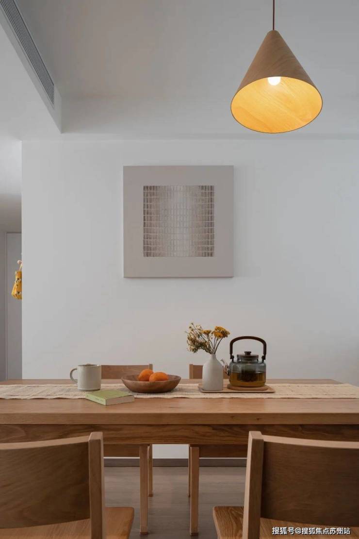 原木餐椅,与整体风格相协调,舒适实用。这里既是日常用餐区,也是周末好友围坐的茶歇角,每一次用餐都仿佛在与自然对话。