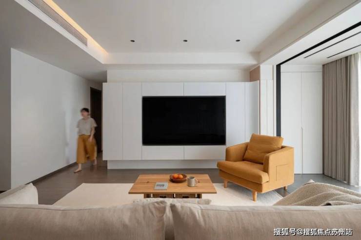 踏入客厅,首先映入眼帘的是那一片片温润如初的原木色系,原木画框里的是生活剧场。拆除传统电视墙的厚重感,设计师用隐藏门和护墙板的沙发背景,+白色悬浮电视柜重构空间比例。地板与立面统一的橡木纹理,如同铺展开的自然画卷,既实用又不失美感。