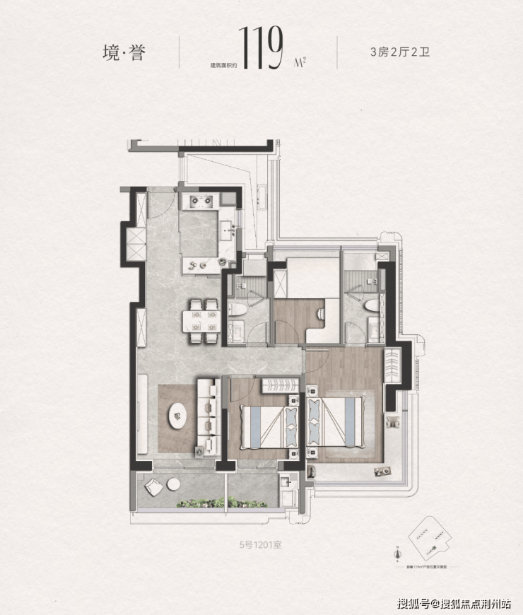 相较于市面上常见的90-100㎡紧凑三房,建面约119㎡提供了更为舒适的生活空间;而与140㎡以上大户型相比,又在总价控制上展现出明显优势。
