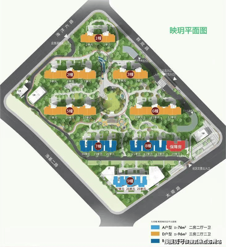 【大名城·映玥】此次推出主力户型为建面约84-96㎡(3房)的洋房,1梯2户私密设计,容积率低至约1.2,建筑密度约21.65%,车位配比1:1.1。