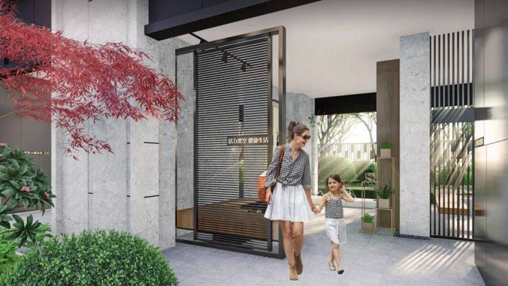 通过园林中曲径通幽的设计手法,布置景墙设计,引人入胜。社区内打造大树聚场、儿童乐园、阳光草坪、健身跑道等多个功能空间,依托架空层构建出更多的互动空间,扩展社区内的活力活动场域,为居者营造更多幸福生活的场景。