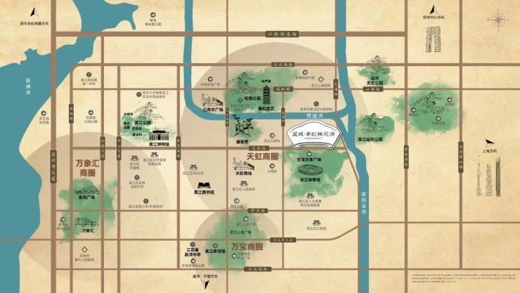 2023年,吴江城投力邀苏州桃花源总设计师王科先生,携香山帮御用古建团队、苏桃核心景观区营造团队、杭州江南里景观总设计师、绿城中国十大金牌讲师、蓝城风景园林院院长丁自峰团队等苏州桃花源原班团队回归,于吴江文化积淀深厚之地------垂虹桥旁、运河畔,再造一座桃花源。