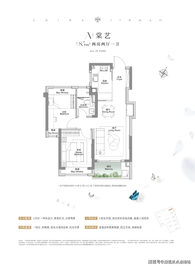 首先,小户型也有大空间,超高附加值增加实得率。即便是最小的建面约85㎡户型,也“挤”出了大空间,堪称小户型的典范。